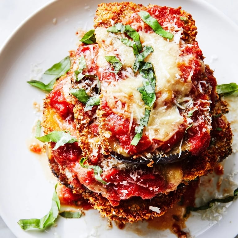 This is endlessly adaptable once you understand the basic structure. Some people add a layer of ricotta mixed with egg between the eggplant and sauce for extra richness. Others fry the eggplant slices instead of baking them for maximum crispiness. You could add roasted red peppers, fresh spinach, or mushrooms to create new variations. The beauty of Eggplant Parmesan is that it works as a cozy weeknight dinner or elegant enough for guests, and it actually improves when made a day ahead and reheated.