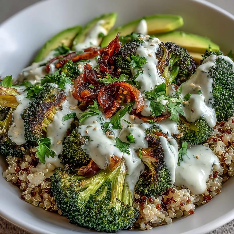 Save to Pinterest There's something magical about the transformation of humble broccoli in this Mediterranean-inspired bowl. When those green florets hit the heat of the oven, they transform from ordinary to extraordinary—crispy at the edges, tender at the stem, and infused with smoky paprika. Paired with nutty grains and drizzled with velvety tahini sauce, this bowl delivers comfort and nourishment in equal measure.
